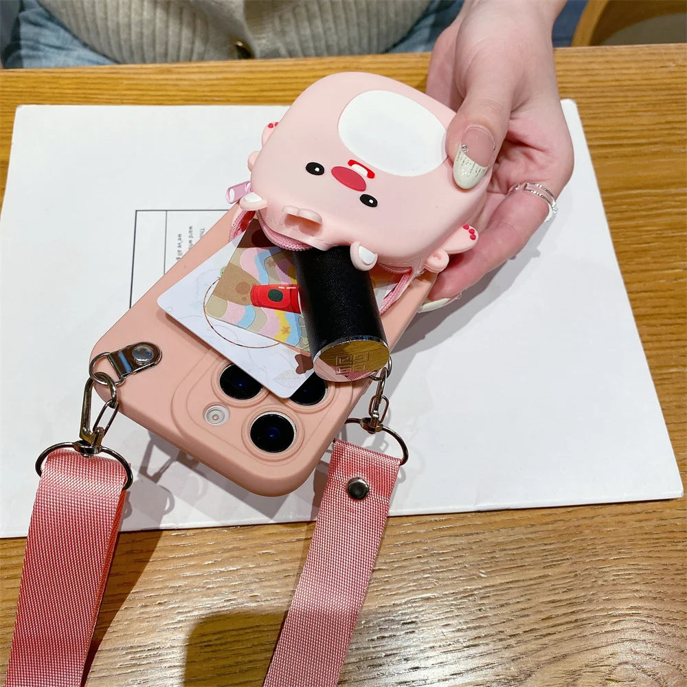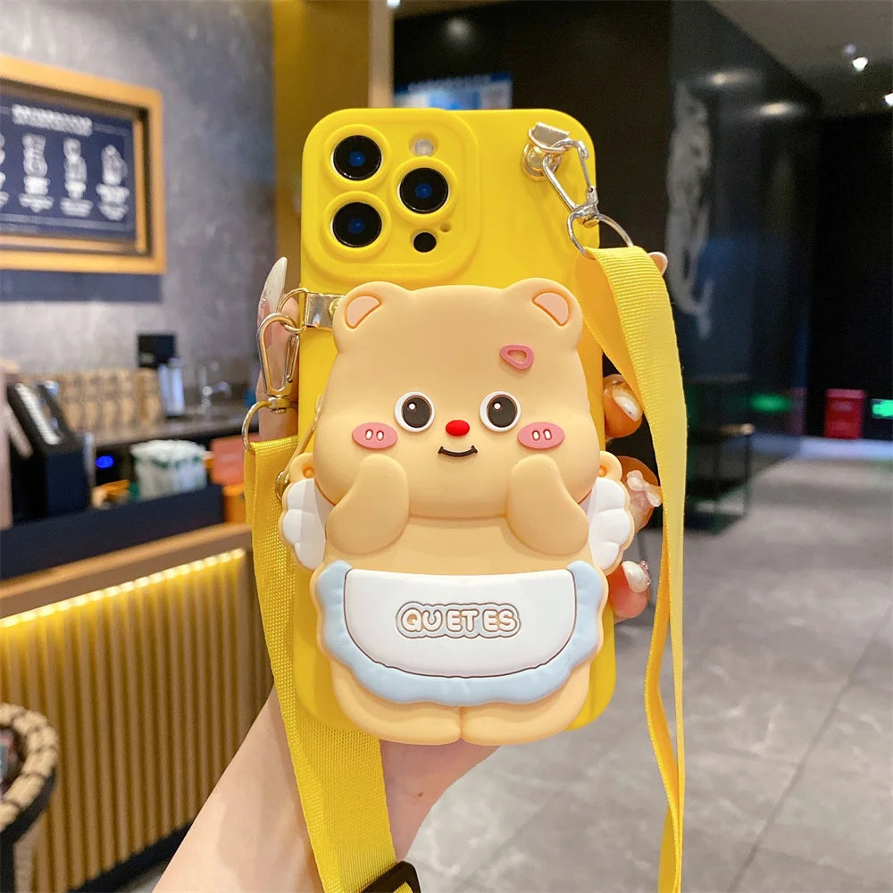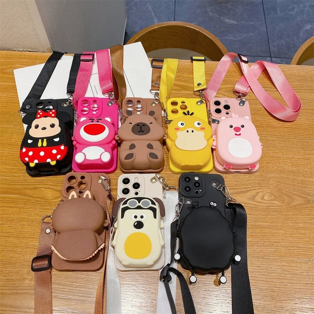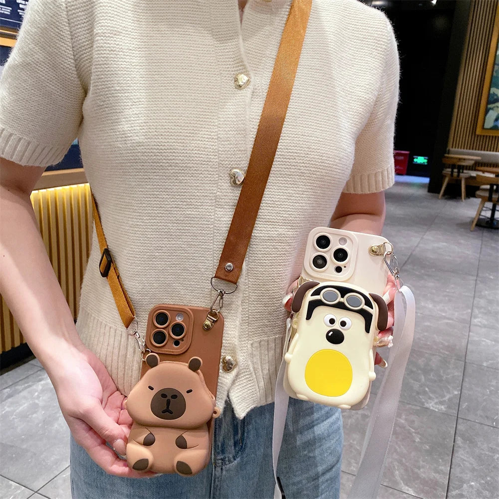1 × 3D Cartoon Capybara Crossbody Strap Coin Wallet Lipstick Bag iPhone Case (OPP Bag)