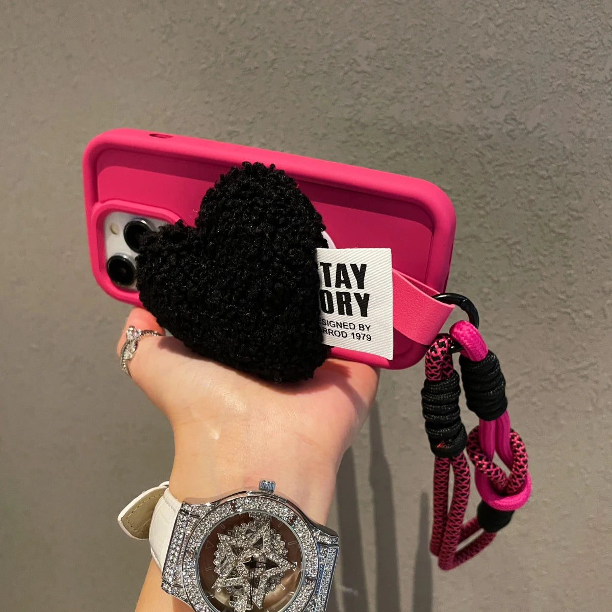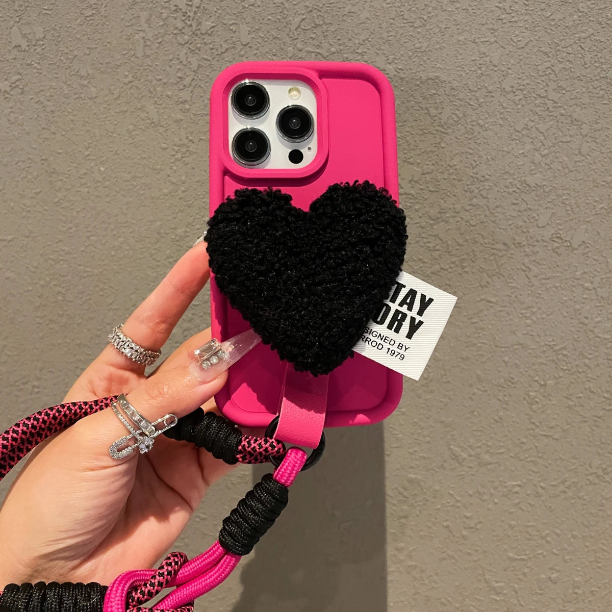 1 × 3D Cute Plush Love Heart Holder Stand iPhone Case (OPP Bag)