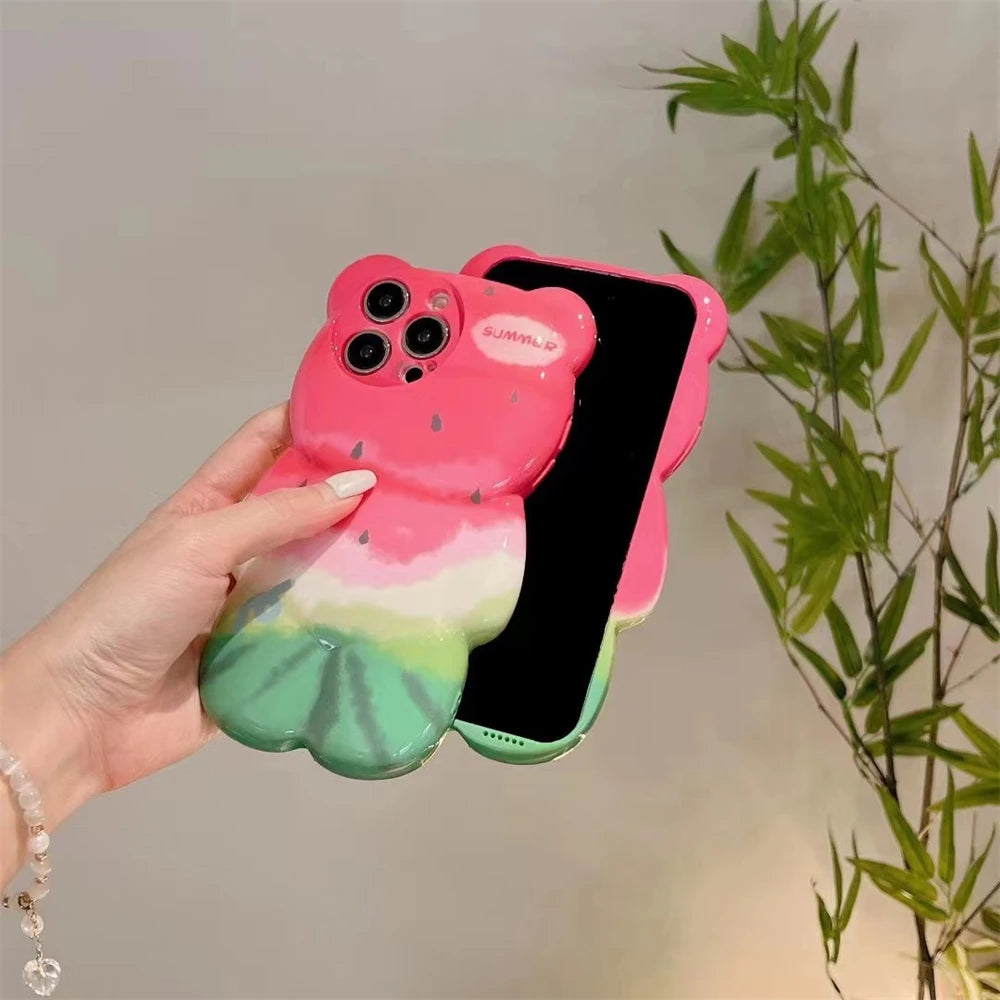 1 × Cartoon 3D Cute Watermelon Bear Silicone iPhone Case