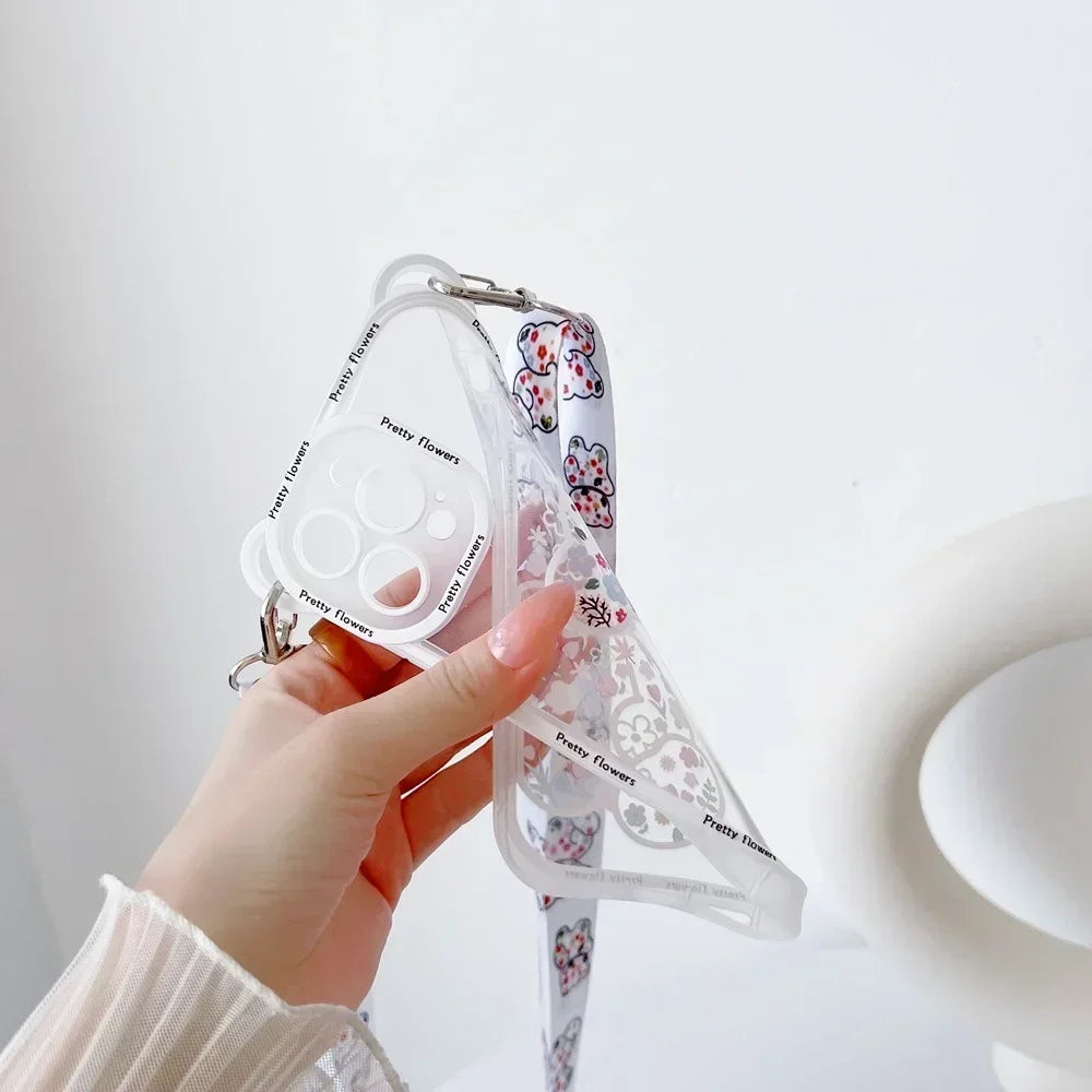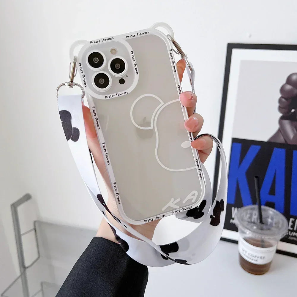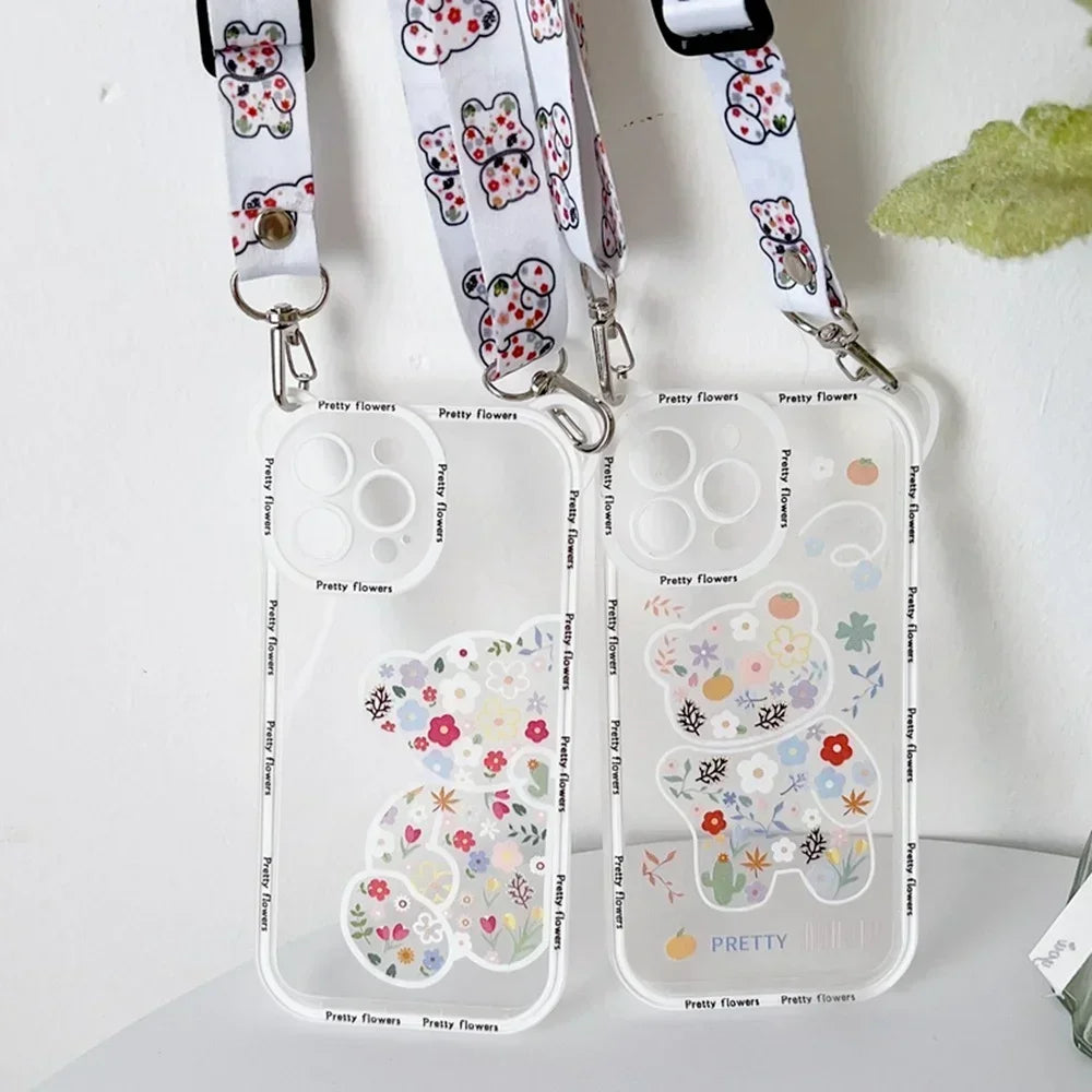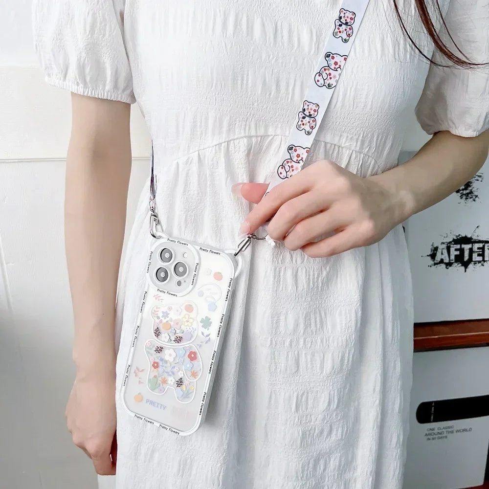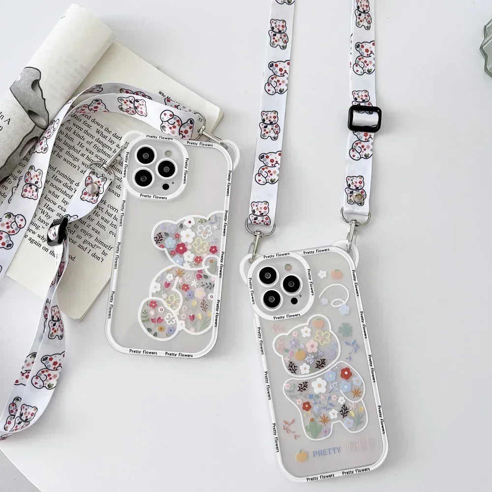 1 × Cute Cartoon Flowers Bear Crossbody iPhone Case (with lanyard / without lanyard as chosen)
