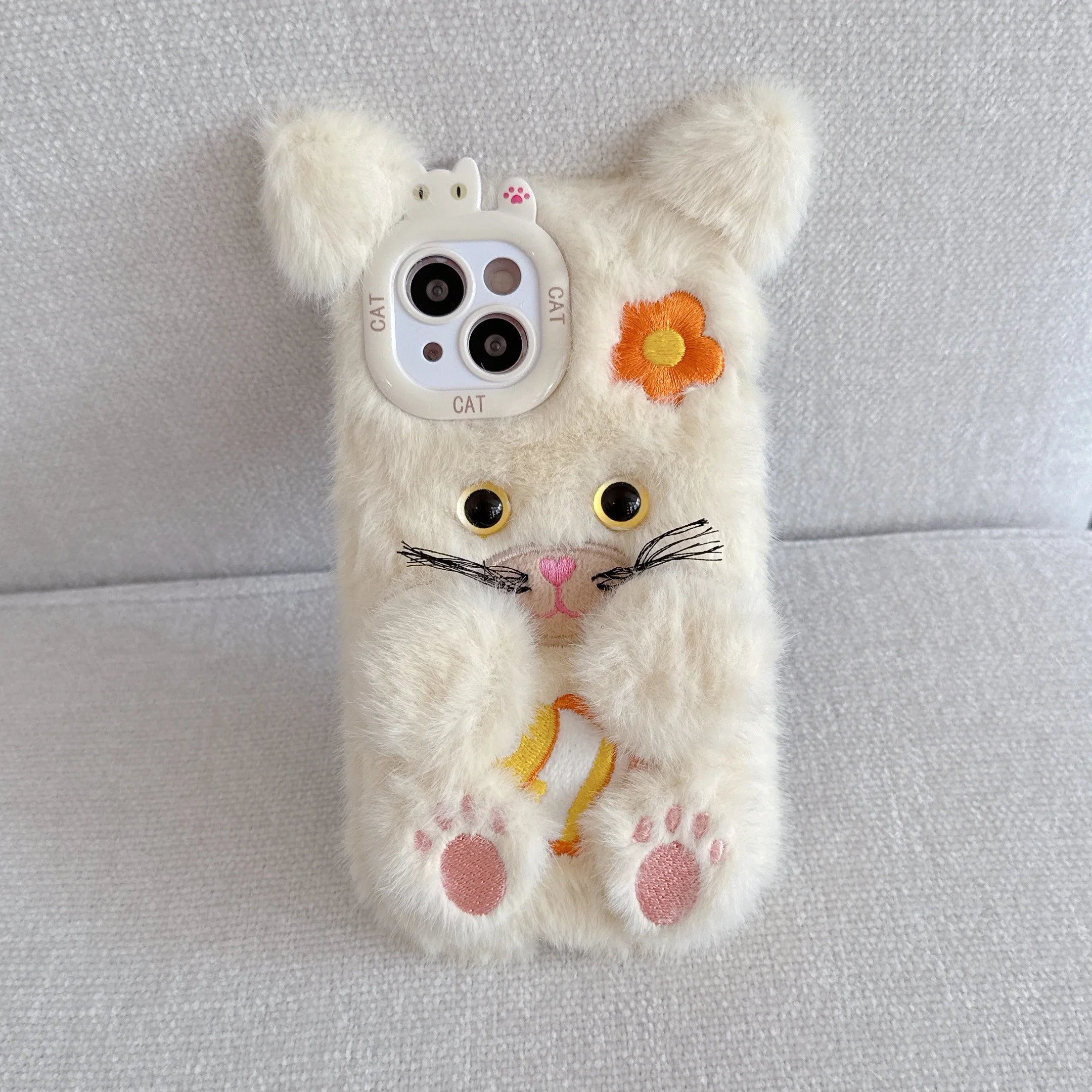 1 × Cute Flower Cat Plush iPhone Case (OPP Bag)