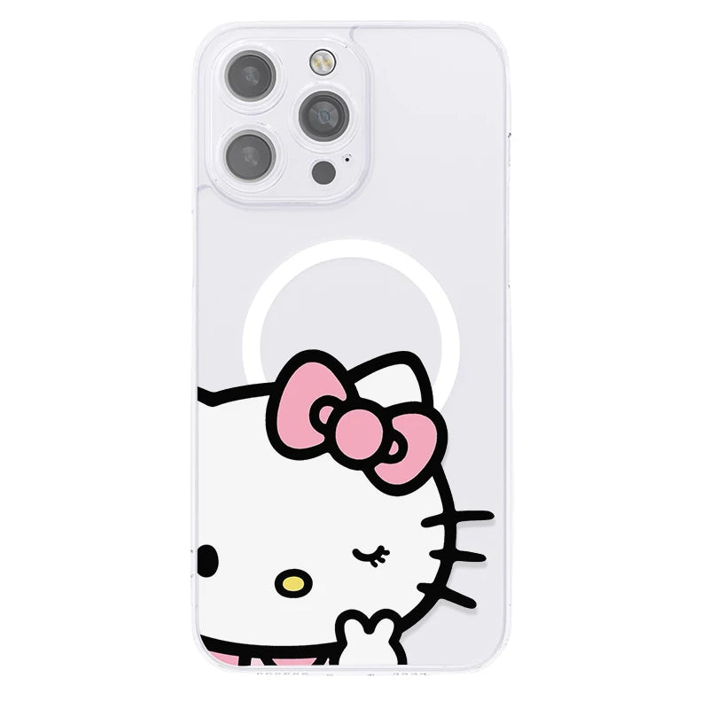 Adorable Hello Kitty cartoon case with sweet colors, MagSafe compatibility for fast charging and easy accessory attachment. Durable build protects your iPhone from scratches and drops.