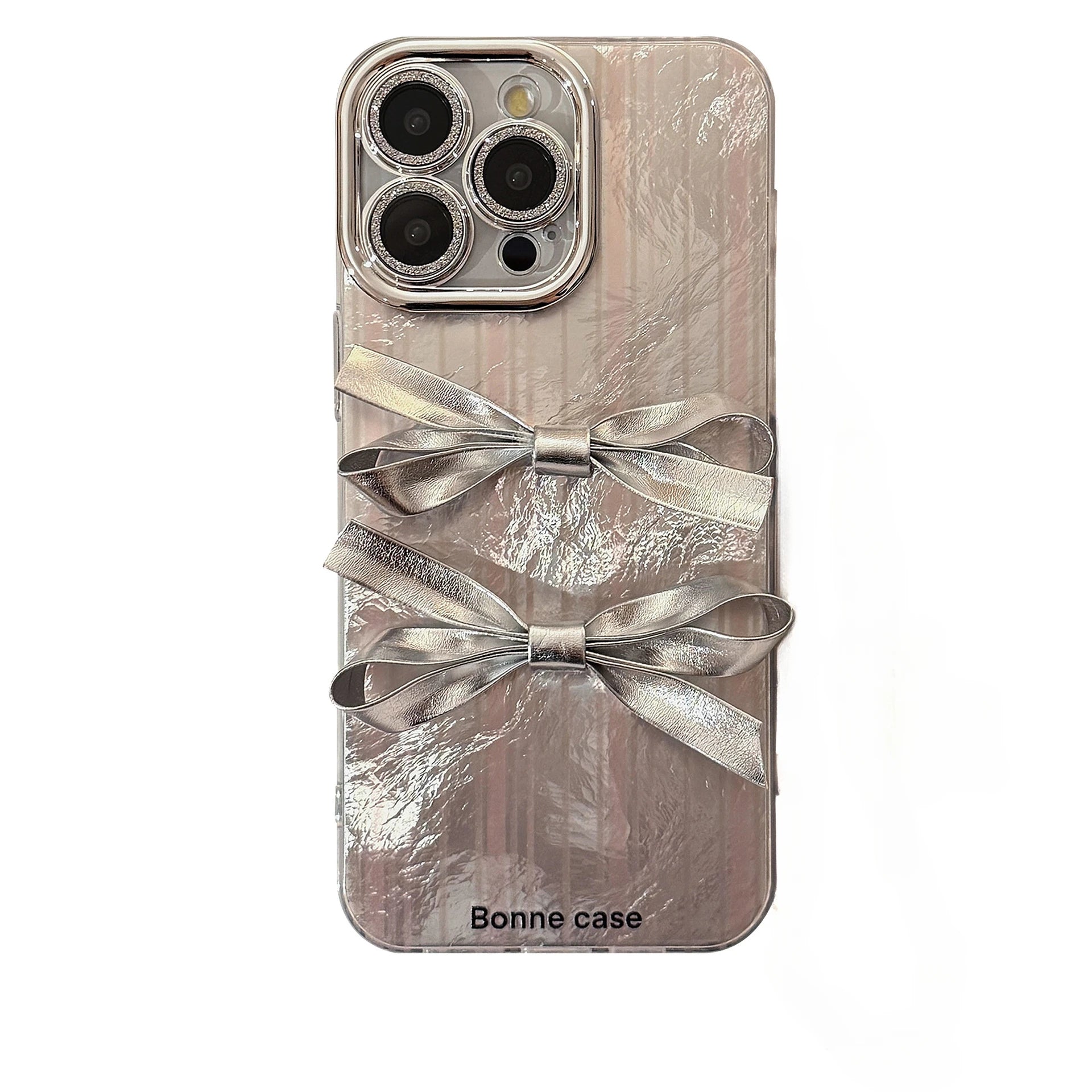 1 × Stereoscopic Silvery Bowknot iPhone Case with Camera Glass Film (OPP Bag)
